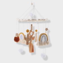 Mobile Musical en Bois Naturel Certifié CE. Favorise le développement visuel et auditif du bébé. Vendu avec Pied d'Attache et Boîte à Musique.