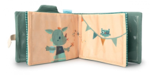 Trousse de toilette en coton ornée de rayures sur fond clair.