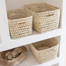 Caisse de rangement en feuilles de palmier avec poignées - 3 tailles disponibles