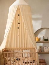 Ce magnifique ciel de lit donnera des allures de conte de fée à la chambre de votre enfant. Suspendu au dessus du lit avec sa belle couleur rose et une guirlande pompons à l'ouverture , ce rideau ci