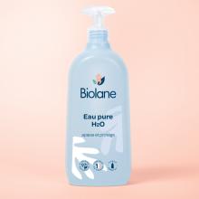 L'eau pure H2O Biolane nettoie parfaitement et en douceur le visage, le corps et le siège de votre bébé pour une peau propre et délicatement parfumée.Elle délivre le produit directement sur le coton par une simple pression et permet de toujours garder une main sur votre bébé pour sa sécurité.