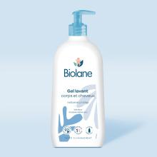 Le gel lavant corps et cheveux Biolane nettoie en douceur et préserve la peau fragile de votre bébé pour qu'elle reste souple, douce et confortable.Composé à 97% d'ingrédients d'origine naturelle, il est enrichi d'un agent surgraissant qui évite les sensations d'inconfort et de tiraillement.