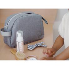 Pratique! elle permet de ranger le nécessaire de toilette de bébé lors des voyages