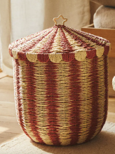 Corbeille avec couvercle en papier tressé pour enfant ornée d’un motif rayé rappelant un chapiteau de cirque. | Zara Home België / Belgique