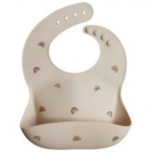 Avec le bavoir en silicone de Mushie, votre petit restera toujours propre et sec pendant le repas, grâce à sa matière déperlante.