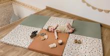Découvrez ce tapis de motricité terrazzo XL de la marque Candide. Le meilleur compagnon des heures de jeu de bébé !