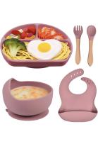 FILOWA Suction Plate for Baby Silicone Tableware with Plate Compartment Suction Cup Wooden Bowl Spoon Fork Bib 5 Pieces BPA-Free Cutlery Lunch Boxes, Dishwasher and Microwave Safe, Blue : Amazon.fr: Baby Products