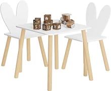 WOLTU Table et Chaises pour Enfants, Petite Table avec 2 Chaises, Meuble d’Enfants pour Manger et Peindre, dans Chambre d'Enfant, Crèche, en MDF et Bois Massif, Blanc et Couleur de bois : Amazon.fr: Cuisine et Maison