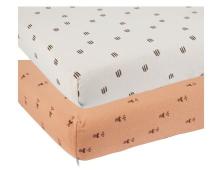 Dreambee Drap-housse pour lit Flo écru/terracotta coton - 2 pièces | Liste de cadeaux Dreambaby