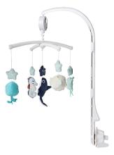 Le mobile musical Billie apaisera votre bébé avec ses doux personnages marins et sa musique calme.