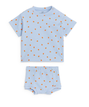 Set with T-shirt and shorts cut from a soft interlock jersey made of cotton. The regular-fit T-shirt features short sleeves and a snap button on the shoulder. The shorts are designed for a tight fit and features elastics at waist.