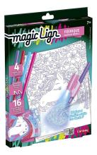 Utilise une lumière magique pour révéler un dessin. Trace les contours de celui-ci avec le feutre puis colorie-le !