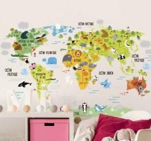 Décorez la chambre de votre enfant de façon ludique avec ce sticker animaux carte du monde en français.