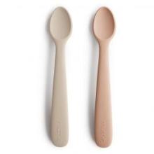 Les cuillères en silicone de Mushie sont adaptées aux gencives de votre bébé.