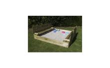 Bac à sable en bois imprégné avec couvercle transformable en bancs.Dimensions 150x150x23cm fermé ou 150x150x53,1cm ouvert.Planches de 9,5x1,6cmQuantité de
