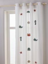 Rideau guirlande à oeillets tamisant animaux marins Sous l'Océan - blanc, Linge de maison et décoration
