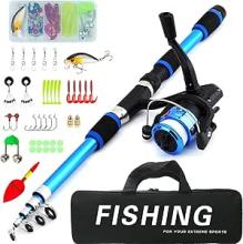 Kit de pêche pour enfants de 1,8 m avec moulinet et leurres, canne à pêche télescopique en fibre de carbone et moulinet, accessoires de pêche pour enfants de 3 à 10 ans : Amazon.com.be: Sports et Loisirs
