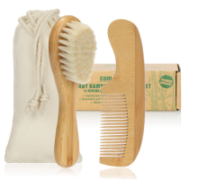 La mini brosse à cheveux en bambou avec des poils doux en laine et le peigne mignon en forme de mouton vont permettre à papa (et à maman) de lui faire des coiffes dignes de ce nom.