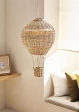 Abat-jour en rotin en forme de montgolfière pour la chambre de Charlie.