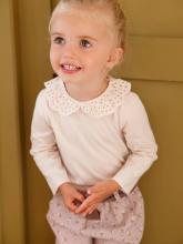 T-shirt col brodé bébé manches longues beige clair -