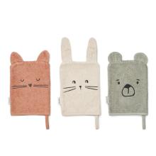 Partagez des moments amusants pendant le bain avec les gants de toilette SYLVESTER en forme d'animaux de safari ludiques. Ils sont conçus pour être portés sur votre main, ce qui facilite le lavage pour vous et vos enfants — et offre une excellente occasion de jouer aux marionnettes. Gant de toilette en coton éponge Gan
