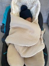 Modèle universel, la couverture de sécurité s'adapte à tous les équipements de bébé : nacelle, siège auto, poussette au système de fixation de ceintures 3 ou 5 points.Bien chaude et moelleuse, la couverture nomade convient parfaitement aux mi-saisons et à l'hiver pour toutes les balades en poussette et les voyages en voiture dès la naissance. Ce douillet cocon ouatiné et doublé de doux jersey de coton procure une agréable chaleur et un confort absolu.