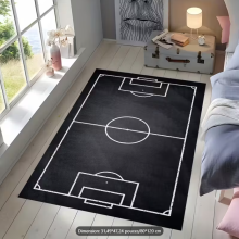 Tapis de football moderne noir - design minimaliste, polyester lavable en machine, pour salon, chambre, salle de jeu - décor sportif, tapis nonslip