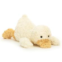 Un peu maladroit, Tumblie Duck finit régulièrement sur le ventre. Il trébuche sans cesse mais il faut dire aussi qu'il adore les glissades. Grâce à sa fourrure couleur crème pâtissière et ultra-douce, il excelle dans la discipline. Il se fera une joie de montrer à votre bout de chou comment faire !