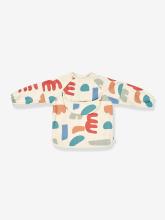 Bavoir à manches évolutif 2 en 1 BEABA Playful Un bel imprimé graphique, une grande taille bien couvrante, une poche de récupération des aliments et des manches pour bien protéger l’enfant durant ses repas ou ses travaux d’é