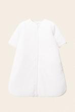 Sac de couchage rembourré en velours lisse, doux et chaud. Entièrement doublé de jersey 100% coton. Manches longues non amovibles. Fermeture éclair à l'avant. Longueur total du sac est de 68 cm (0-6 mois), 82 cm (12-18) et de 102 cm (24-36 mois).