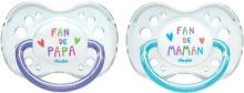 Avec téterelle en silicone réversible qui reste toujours bien positionnée dans la bouche de bébé. Avec nervures pour renforcer sa résistance, sucette idéale pour l'arrivée des premières dents. Motifs et couleurs aléatoires.