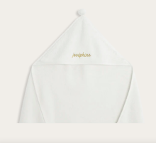 Matière extra douce, enveloppante et incroyablement moelleuse 100% Coton, au grammage de 550gr/m2 Petit pompon sur le haut de la capuche À personnaliser avec une broderie sur la capuche Coupe carrée (80 x 80 cm) Livrée dans son coffret cadeau