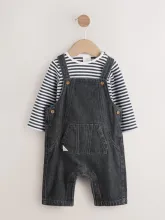 Gris de charbon de bois - Ensemble salopette et body en jean bébé - 3 mois ou 6 mois ou 9 mois.