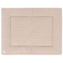 Le Tapis de parc 75 x 95 cm de Jollein est double face, avec un des côtés en tricot et l’autre en fleece.