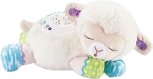 Veilleuse en peluche qui apaise et berce bébé en projetant des douces lumières et en diffusant des jolis sons.