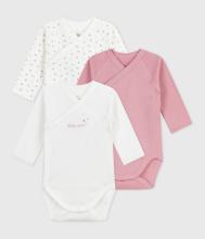 Lot de 3 bodies croisés manches longues - 1 mois - Petit Bateau