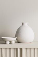 Vase texturé en terracotta émaillée. Modèle agrémenté de poignées délicates. Diamètre de l'ouverture 6 cm. Diamètre au point le plus large 14 cm. Hauteur 24 cm.