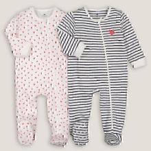 Lot de 2 pyjamas 1 pièce imprimés en icoton La Redoute Collections rayé + imprimé cœurs | La Redoute