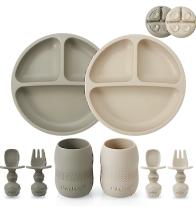PandaEar Ensemble d'alimentation pour bébé en silicone | Lot de 2 plaques ventouses divisées en silicone et lot de 2 petites tasses avec 2 cuillères et 2 fourchettes| Ustensiles pour bébé (Noyer) : Amazon.com.be: Bébé et Puériculture