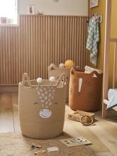 Panier de rangement XL en corde de coton Girafe cannelle - Un panier girafe en corde de coton qui fait office de rangement et de décoration. Avec ses deux pompons oreilles et son visage imprimé, il est parfait pour ranger les jouets.