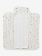 Voici un joli tapis à langer de voyage qui se replie comme une pochette et se glisse facilement dans le sac à langer ! Une fois déplié, il accueille bébé sur une serviette éponge amovible pour le mo