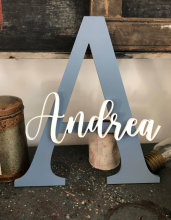 Lettre en gris , prénom en blanc.