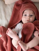 Matière extra douce, enveloppante et incroyablement moelleuse 100% Coton, au grammage de 550gr/m2 Petit pompon sur le haut de la capuche À personnaliser avec une broderie sur la capuche Coupe carrée (80 x 80 cm) Livrée dans son coffret cadeau