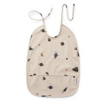 BAVOIR IMPERMÉABLE POUR ENFANTS Bavoir pratique pour rendre les repas un peu moins salissants - un élément essentiel pour votre sac à langer. Composition: 100% polyester recyclé Imperméable Facile à nettoyer Poche avant fourre-tout STANDARD 100 by OEKO-TEX®