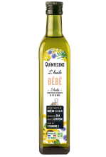 Pour les repas de Bébé dès 4 mois, découvrez le mélange d'huiles végétales bio Quintesens, pour un apport adapté en DHA et Oméga 3.