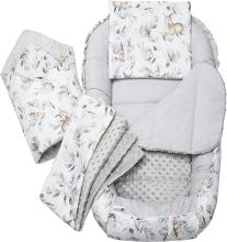 Medi Partners Reducteur de lit Bébé Cocon 100x60x15cm 100% Coton Baby Nest Nouveau-né Nid de Bébés Oreiller Couverture Insert Amovible (Cerf en Feuilles avec Minky Gris)