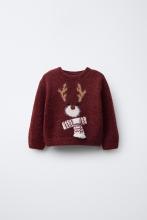 Pull en maille à col rond et manches longues. Fermeture boutonnée sur l'épaule. Détail renne brodé sur le devant.