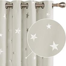 Deconovo Lot de 2 Rideaux Occultant Rideau de Porte Thermique Anti Froid Oeillet Isolant avec Motif Etoile Argente Beige 140x183cm