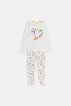 Les petits matins et les douces nuits sont placés sous le signe de l’Amour ! Ce pyjama en jersey doux est composé de deux pièces coordonnées : un haut (col rond et manches longues) et un pantalon imprimé (coupe legging, taille élastiquée et bas de jambes surpiqués).