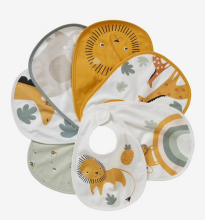 Des bavoirs, il en faut beaucoup tout de suite ! Alors autant les faire en lot de 7 animés de jolis motifs et quand ils sont bio, c'est encore plus beau !